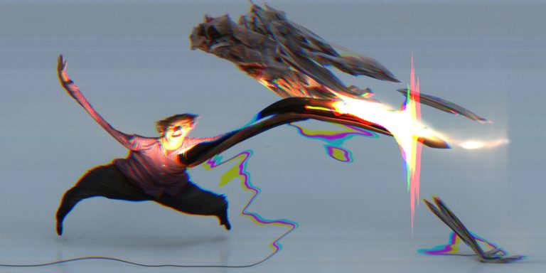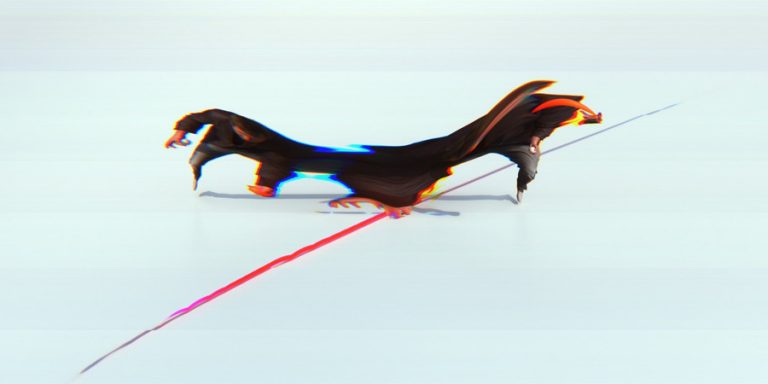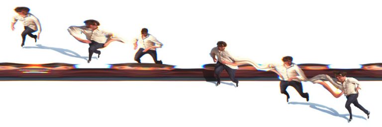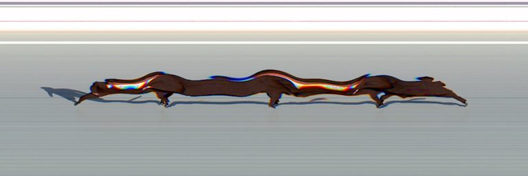 Auch in den Bewegungsstudien der KOSCHIES wird der eindeutige Blickwinkel der Zentralperspektive mit exaktem Fluchtpunkt aufgegeben für eine undefinierte Raumsituation. Raum ist nicht länger eine Eigenschaft der Geometrie, sondern wird durch die Präsenz der Figuren zusammengehalten. Diese Figuren bewegen und verformen sich, bleiben aber scheinbar auf der Stelle. Ihre Dynamik in der Zeit erzeugt plastische Metamorphosen im Raum.